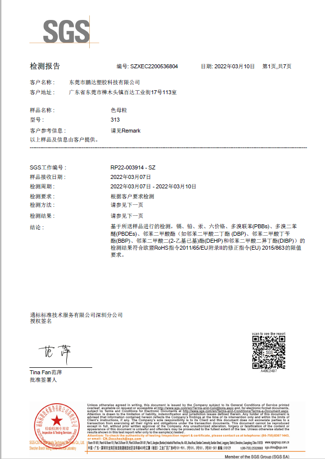 和鵬達(dá)塑膠科技有限公司合作很長(zhǎng)一段時(shí)間了,他們的產(chǎn)品質(zhì)量好,服務(wù)到位,且原材料都通過(guò)SGS測(cè)試符合歐盟REACH,PaHS、ROHS及無(wú)鹵指令,備有美國(guó)FDA級(jí)食品接觸規(guī)格物料,和他們合作完全沒(méi)有后顧之憂!